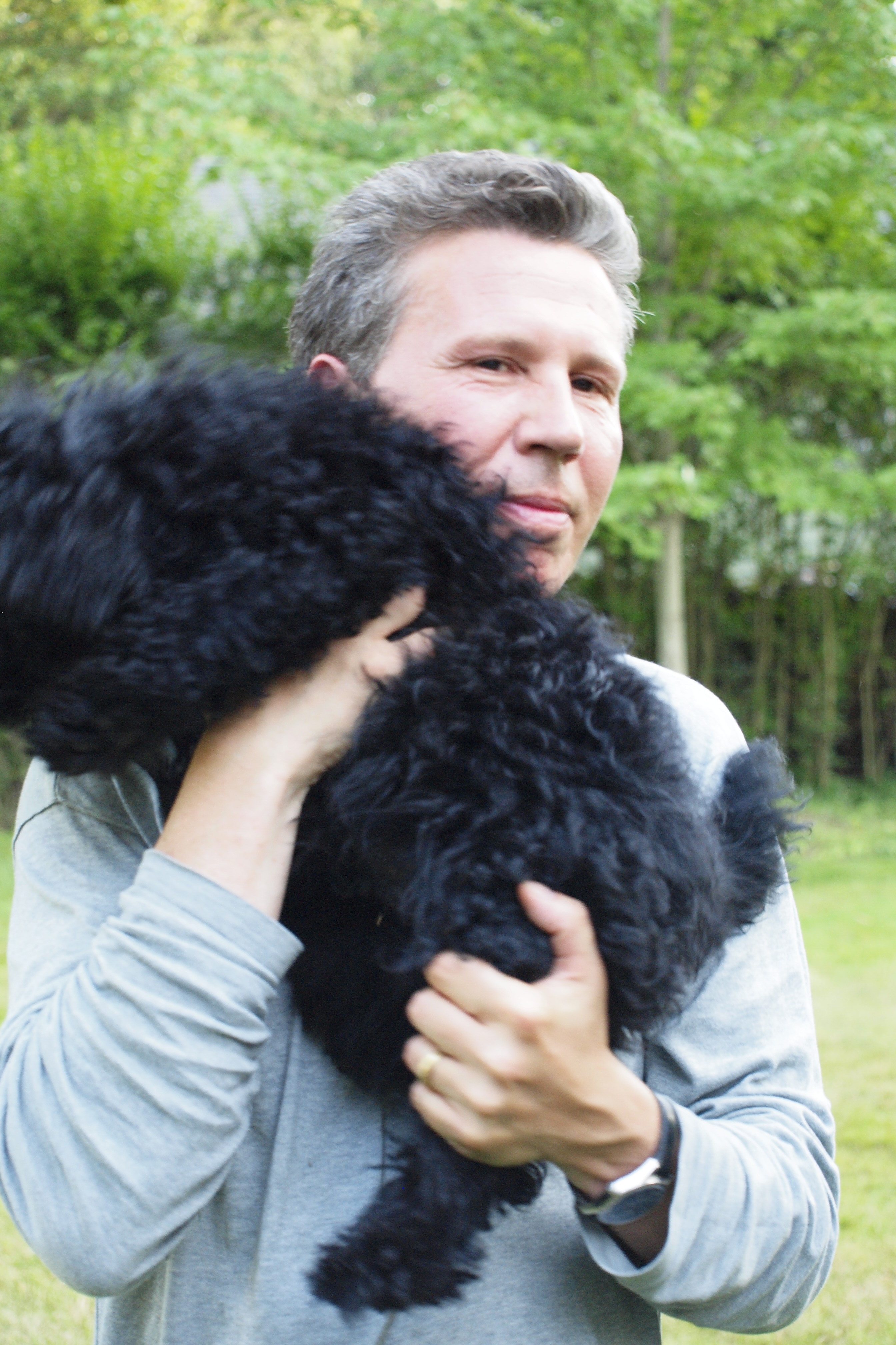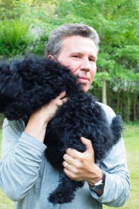 Dez and Nick met the pups, their mum (Pippa) & their sister (Amy) when the pups were about 5 weeks old.  Here’s Nick with Ouzo.  Fluffy even then, but still so small!