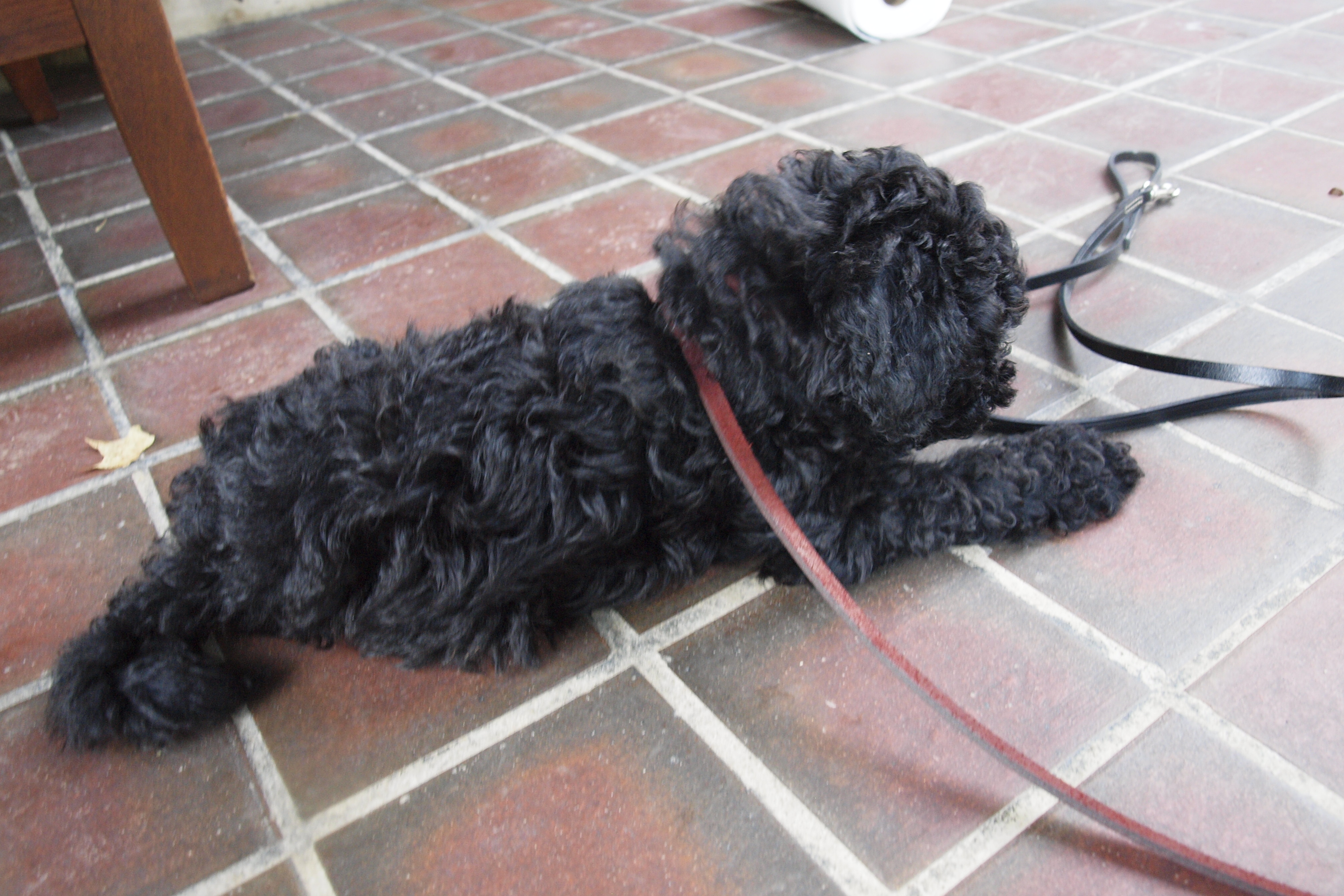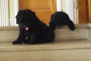 Surprised? Trying to startle the hiccups out of a pup (Sassa) works about as well as it does in human: not at all. Have you ever seen a dog or puppy hiccup? It is amusing…(we’re laughing WITH him, I promise). Little Sassafra’s hiccups don’t last for too long and don’t seem to be related to anything (they can occur after a nap, or after eating or after playing — no pattern to it). The Internets tell DezandNick not to worry, that this is common in pups. It’s not slowing him down any, that’s for sure.